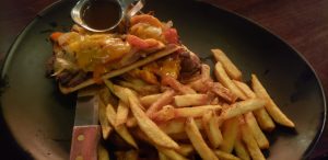 – cooked to your liking, sauteed onion and red peppers with melted cheese on a fresh toasted ciabatta. Gravy on the side.